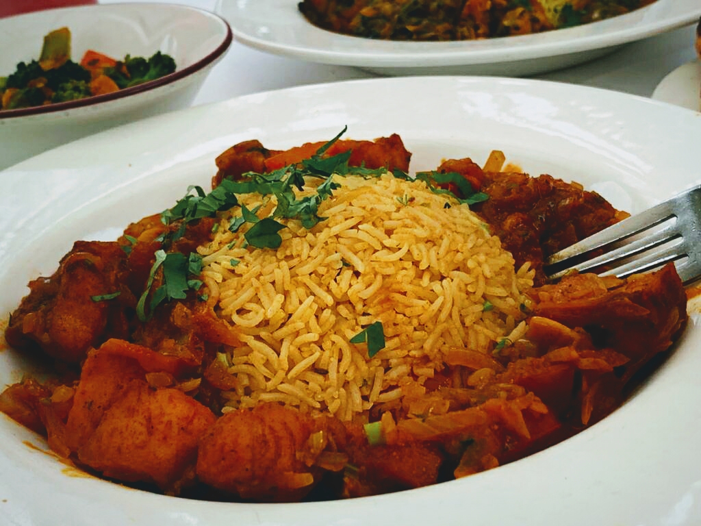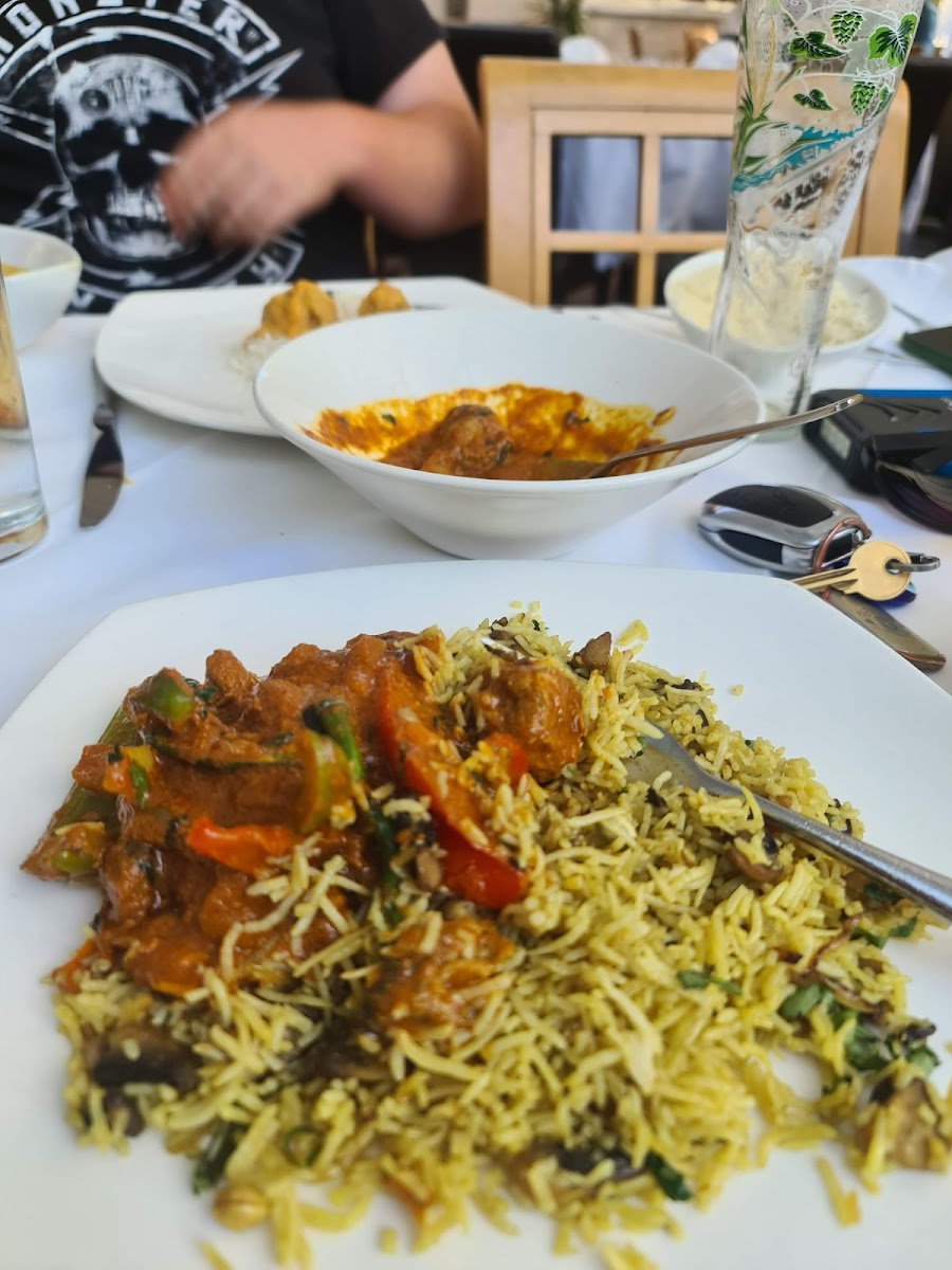 The restaurant's menu features a wide variety of popular dishes that capture the essence of Indian cooking. If you're a fan of classic tandoori dishes, Tandoori Chicken is a must-try, offering tender, smoky flavors. For those who love a spicy kick, the Lamb Vindaloo and Chicken Korma provide the perfect balance of heat and richness. Vegetarians can enjoy the Bhindi Bhaji, a flavorful okra dish that’s a favorite among regulars. Pair these dishes with delicious sides such as Garlic and Onion Rice, Mushroom Rice, or Naan for a satisfying meal. Don't forget to try their Coconut Shrimp for a delectable seafood option, or the Kebab for a perfect grilled treat.